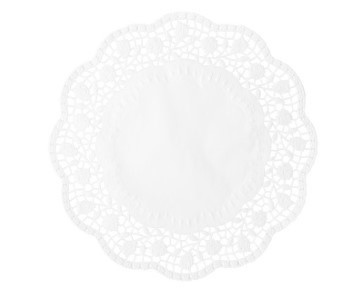 Serwetka ozdobna, AŻUR OKRĄGŁA, 25 cm średnicy, 6 sztuk w opakowaniu, w kolorze białym.