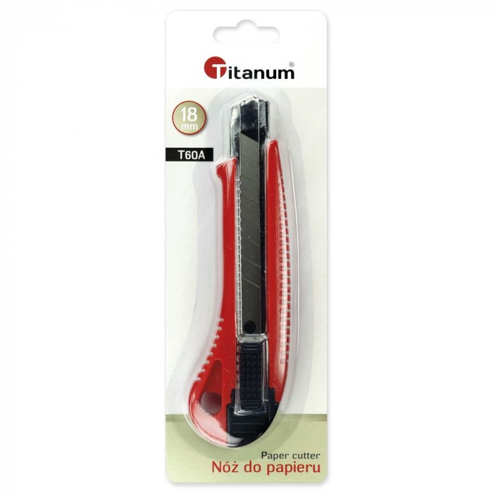 - uniwersalny - wykonany z tworzywa ABS - szerokość ostrza 18mm - z regulowaną długością ostrza - z metalową prowadnicą - wymienne ostrze - kolor czerwony z czarnymi dodatkami - pakowany na blistrze