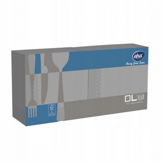 Serwetki papierowe AHA są bardzo wytrzymałe. Przeznaczone do jednorazowego użytku. Serwetki są gładkie, bez wzoru, dzięki temu idealnie wkomponują się do każdego wystroju stołu. Można je wykorzystać nie tylko do wycierania po posiłku, ale również do tworzenia kompozycji dekoracyjnych. Świetnie sprawdzą się na specjalne uroczystości typu wesela, komunie, urodziny, imieniny oraz podczas kameralnych imprez: obiady, kolacje, grille, ogniska itp.