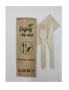 Enjoy&BeEco Sztućce higieniczne drewniane (nóż, widelec, serwetka)