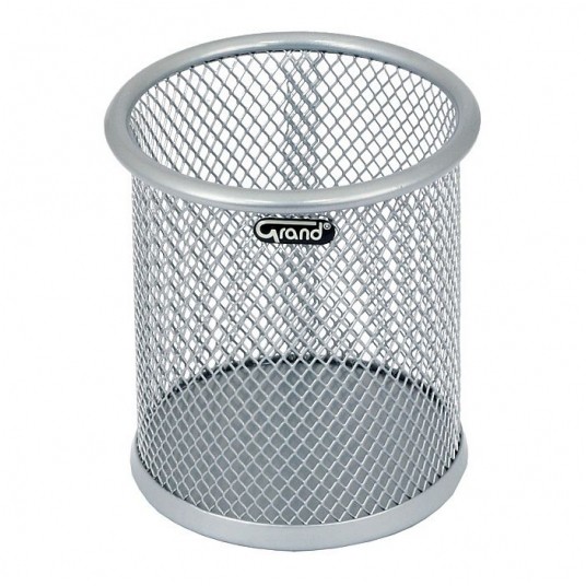 -Pojemnik na długopisy GRAND GR-004S siatka met. srebrny -lakierowany metal w kolorze srebrnym -wymiary: 101 x 90,5 mm