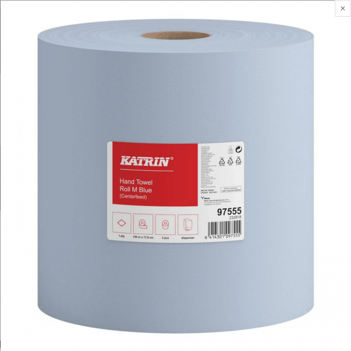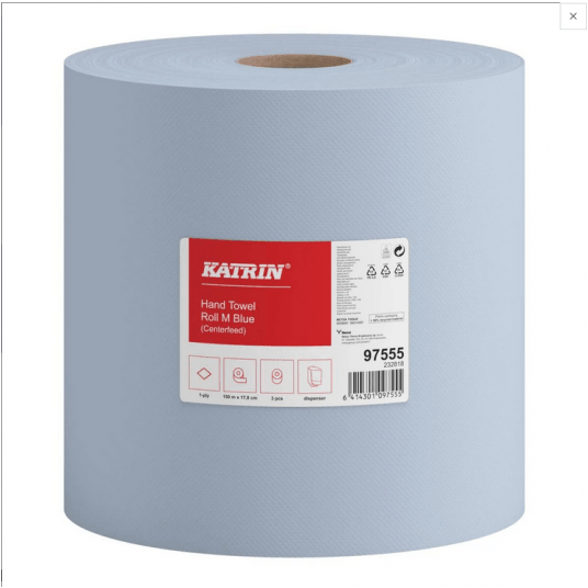 Ręcznik papierowy, 1 warstwowy, niebieski, 12 rolek w opakowaniu zbiorczym, ok 1000 listków, długość rolki 250m, średnica rolki 200mm Rozmiar M, Zamiennik do: KTR.2580 KTR.97579 Do systemu: Centerfeed Centralnego dozowania