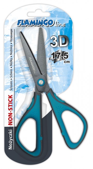 Nożyczki teflonowe czarne ostrze 3D 17,5cm Flamingo