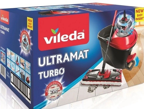 Mop obrotowy Vileda Ultramax TURBO: Łatwe sprzątanie, bezdotykowe odsączanie