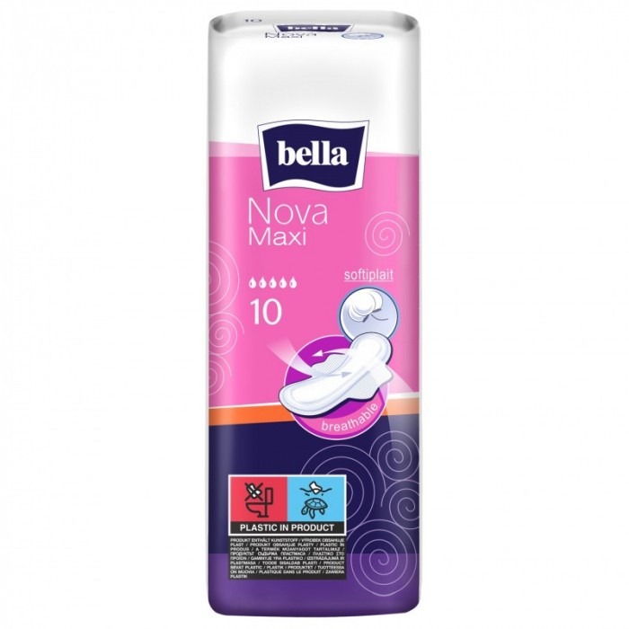 Podpaski higieniczne Bella Nova MAXI, 10sztuk w opakowaniu, 18 opakowań w kartonie zbiorczym.