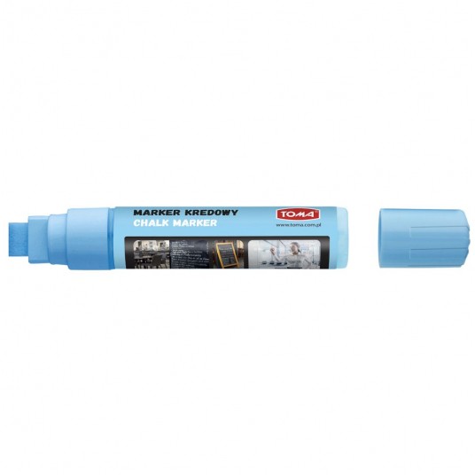 -Marker z płynną kredą -Do pisania po tablicach czarnych, białych, po szkle i powierzchniach plastikowych -Zmywalny wodą, jak zwykła kreda -Nasączalne końcówki fibrowe -Bezwonny tusz pigmentowy -Nie zawiera xylenu -Końcówka ścięta 15-8 mm -kolor niebieski