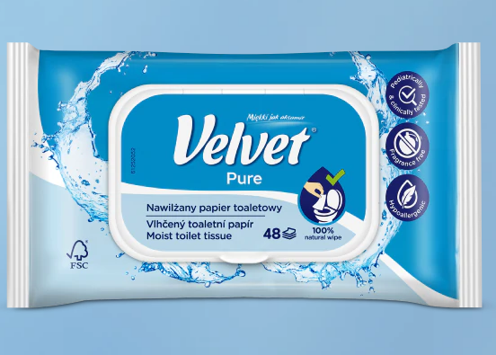 Nawilżany papier toaletowy VELVET PURE 48szt /16