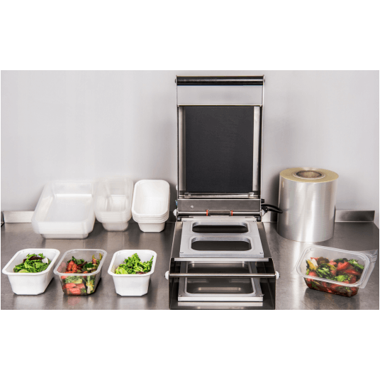 zapewnia łatwe i precyzyjne foliowanie pojemników do transportu żywnośc