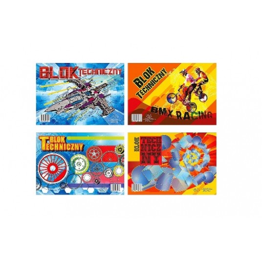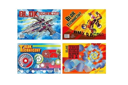 blok techniczny, biały, A4, rózne wzaory okładek