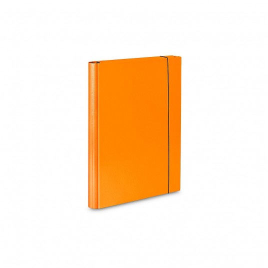 - wykonana z twardej tektury o grubości 2 mm - jednostronnie barwiona - pokryta folia polipropylenową - do formatu A4 - szerokość grzbietu 40 mm - wyklejka papierowa - zamykana na gumkę - kolor pomarańczowy