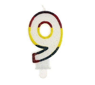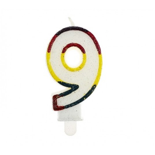 Świeczka cyferka z brokatem, 1 sztuka, cyfra: 9. Promocja.