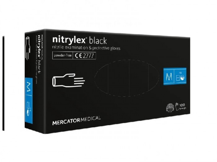 Rękawice nitrylex BLACK CZARNE bezpudrow 100szt M