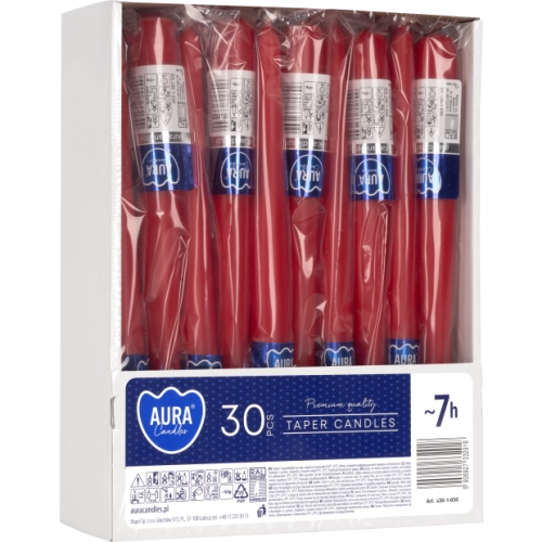Świece stożkowe, dostępne w kilku wariantach kolorystycznych. Nie kapią, palą się jasnym równym płomieniem. Świece pakowane pojedynczo z kodem EAN na 1szt.