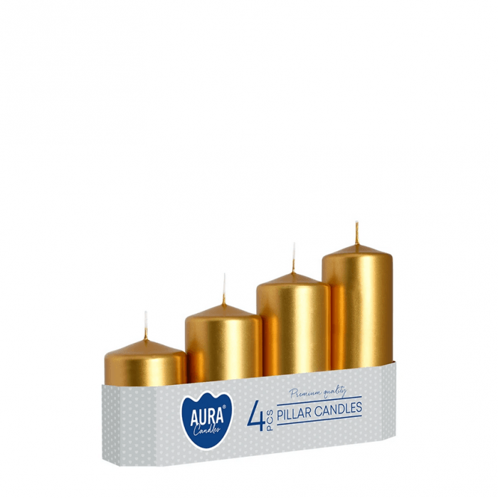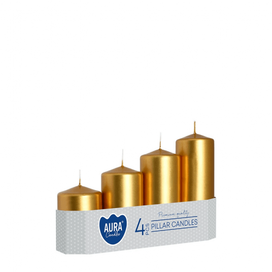 Zestaw 4 stopniowanych świec w kształcie walca. Eleganckie i ponadczasowe, doskonałe, jako uniwersalny element dekoracyjny wnętrz. Dostępne w kilku wariantach kolorystycznych.