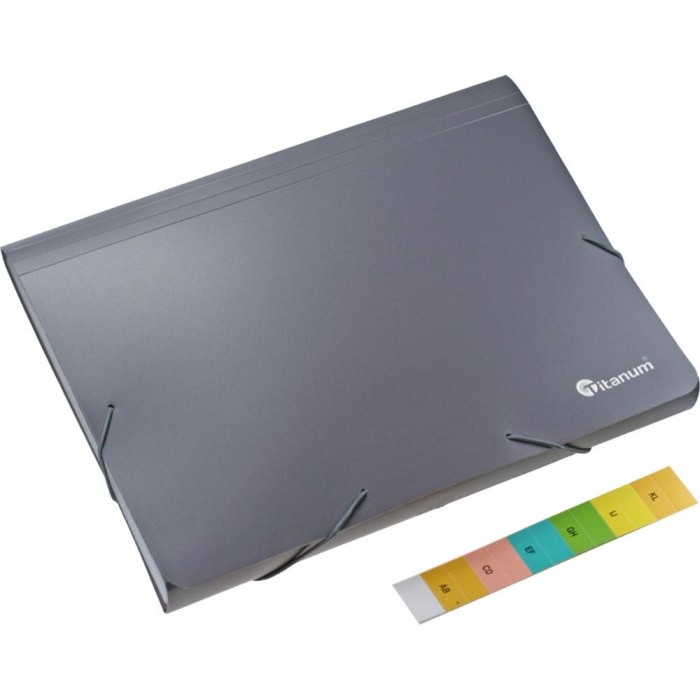 - format A4 - 13 przegródek - w zestawie indeksy opisowe - na gumkę w kolorze teczki - z trwałego polipropylenu - kolor: szary