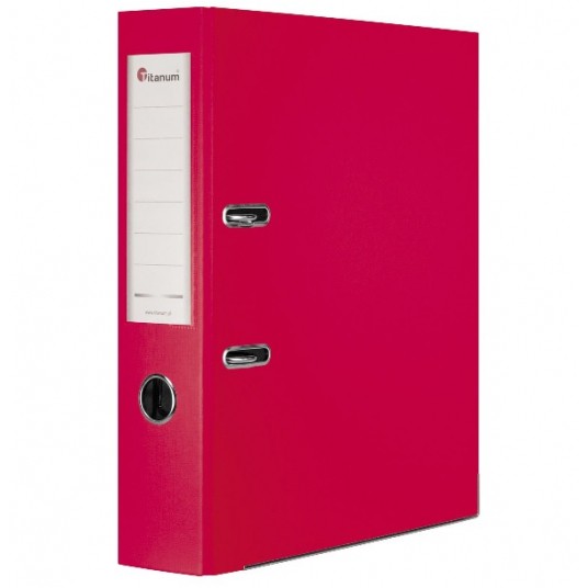 - wykonane z twardej tektury pokrytej folią polipropylenową - wewnątrz wyklejka papierowa - mechanizm dźwigniowy z dociskiem - na grzbiecie otwór ułatwiający wyjmowanie segregatorów z półki - dolna krawędź wzmocniona metalowym okuciem - wymienna obustronna etykieta do opisu - kolor czerwony