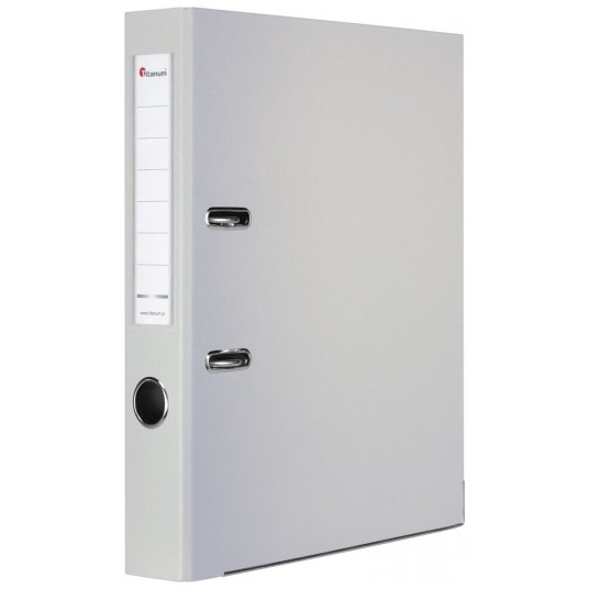 - wykonane z twardej tektury pokrytej folią polipropylenową - wewnątrz wyklejka papierowa - mechanizm dźwigniowy z dociskiem - na grzbiecie otwór ułatwiający wyjmowanie segregatorów z półki - dolna krawędź wzmocniona metalowym okuciem - wymienna obustronna etykieta do opisu - kolor biały