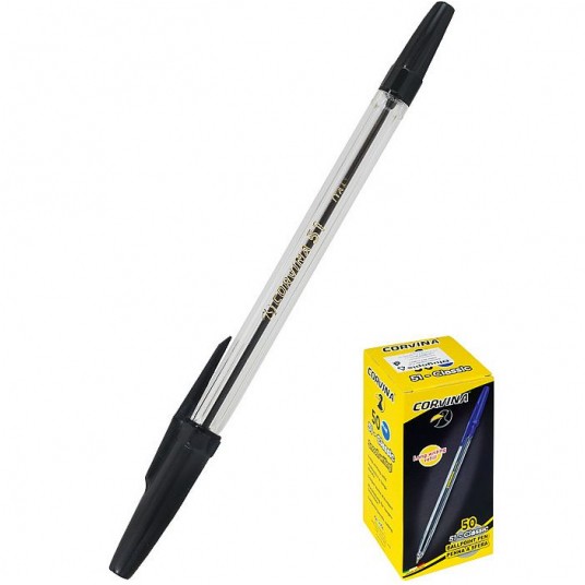 -Długopis Corvina 51 czarny (40163/01) -z wymiennym wkładem -przezroczysta obudowa ABS umożliwia kontrolę stopnia zużycia wkładu -mosiężna kulka pisząca -zatyczka w kolorze wkładu -tusz wodoodporny -długość pisania: 2000 m -grubość linii 1 mm -kolory tuszu czarny -50 szt w opakowaniu