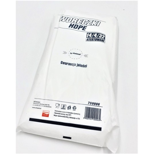 Woreczki HDPE, rozmiar: 14/4/32, ok. 800 sztuk Stary symbol: OP14/32