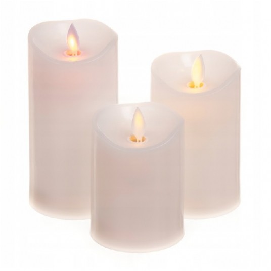 świeca led, ruchomy płomień, kolor biały lub kość słoniowa, wysokość: 150mm, Średnica: 50 mm, zasilana bateriami
