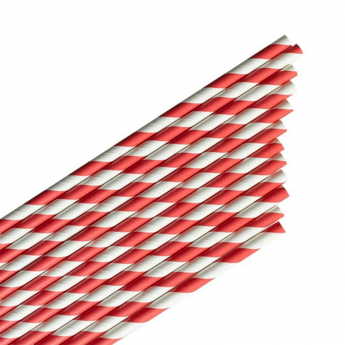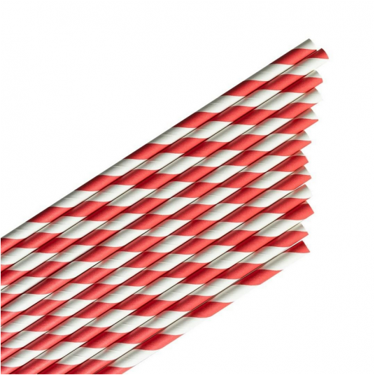 Słomka papierowa x200mm PASKI CZERWONE 144szt