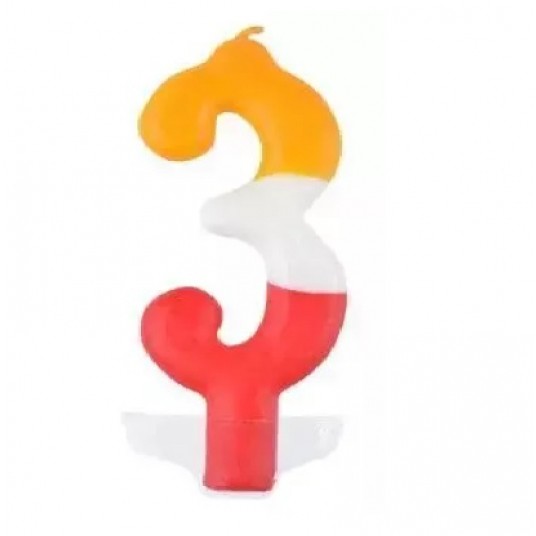 Świeczka cyferka '3', kolorowa, 1 sztuka w opakowaniu. PROMOCJA
