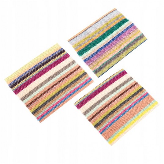 ścierka szorstka do bardzo mocno zabrudzonych powierzchni, 1 sztuka, kolorowa w paski Wymiary: 11x14cm I 10X12,5 GROUP