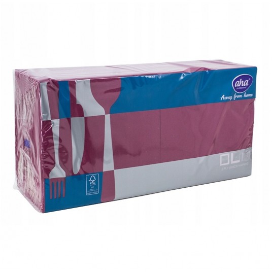 Serwetki papierowe AHA są bardzo wytrzymałe. Przeznaczone do jednorazowego użytku. Serwetki są gładkie, bez wzoru, dzięki temu idealnie wkomponują się do każdego wystroju stołu. Można je wykorzystać nie tylko do wycierania po posiłku, ale również do tworzenia kompozycji dekoracyjnych. Świetnie sprawdzą się na specjalne uroczystości typu wesela, komunie, urodziny, imieniny oraz podczas kameralnych imprez: obiady, kolacje, grille, ogniska itp.