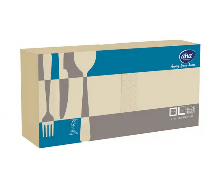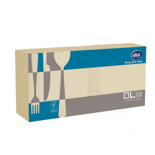 Serwetki papierowe AHA są bardzo wytrzymałe. Przeznaczone do jednorazowego użytku. Serwetki są gładkie, bez wzoru, dzięki temu idealnie wkomponują się do każdego wystroju stołu. Można je wykorzystać nie tylko do wycierania po posiłku, ale również do tworzenia kompozycji dekoracyjnych. Świetnie sprawdzą się na specjalne uroczystości typu wesela, komunie, urodziny, imieniny oraz podczas kameralnych imprez: obiady, kolacje, grille, ogniska itp.