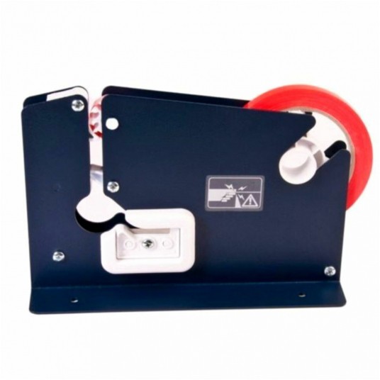 Zaklejarka do woreczków z metalowym korpusem zaopatrzona w nóż ucinający taśmę.