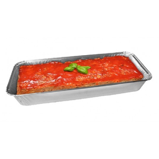 Wymiary w mm (dł; szer; wys): 259x116x28. Foremka aluminiowa, gładka, 650 ml pojemności. Obrzeże w kształcie litery G -bez dekla. Pakowana po 100sztuk, 14 opakowań w kartonie, czyli 1400sztuk.