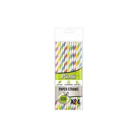 Akcesoria "Piknik" są wykonane wyłącznie z najwyższej jakości surowców. Posiadają niezbędne atesty dopuszczające do kontaktu z żywnością. Estetyczne opakowanie z charakterystycznym znakiem firmowym zwraca uwagę klientów w sklepie i ułatwia dokonanie wyboru. Kolorowe, papierowe słomki do napojów w 100% biodegradowalne, przyjazne naturze. 24 sztuki w opakowaniu.