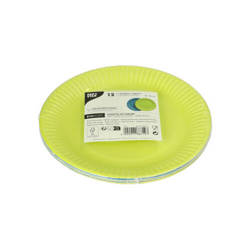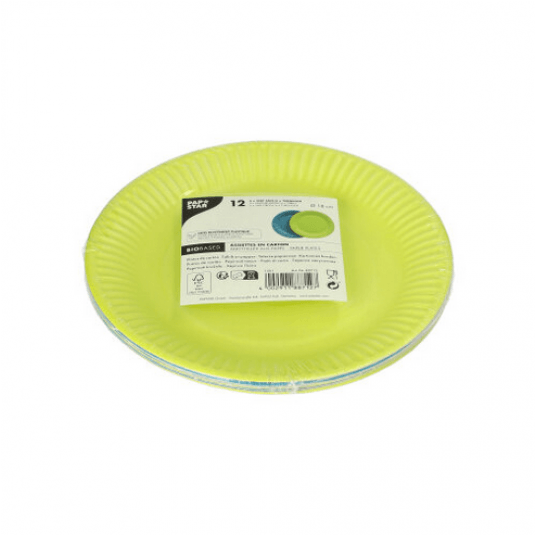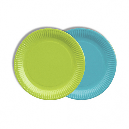 talerz papierowy, okrągły, dwa kolory: limonkowo-turkusowy, 18 cm średnicy, 12 sztuk w opakowaniu