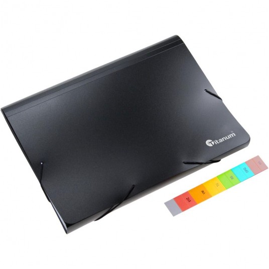 - format A4 - 13 przegródek - w zestawie indeksy opisowe - na gumkę w kolorze teczki - z trwałego polipropylenu - kolor: czarny