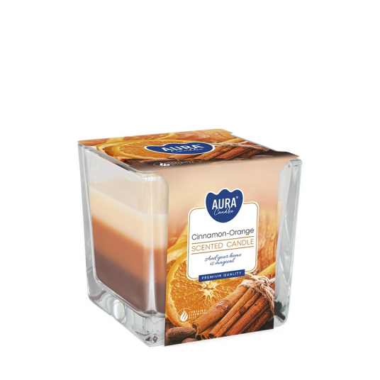 Świeca zapach szkło 3 kolory AURA Cynamo Pomarańcz