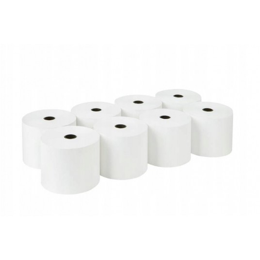 Rolka kasowa TERMICZNA, rozmiar: 57mm x 60mb, 8 rolek w opakowaniu, 10 opakowań w kartonie zbiorczym.