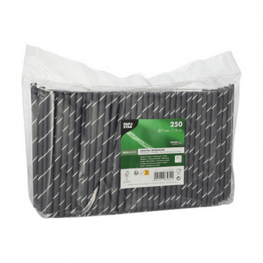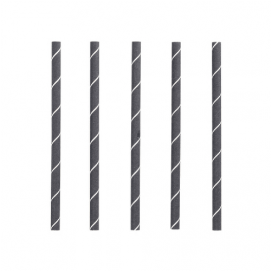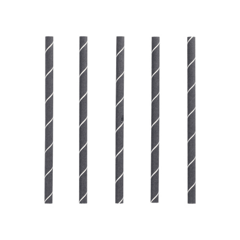 Słomka papierowa 7x150mm CZARNA PASKI 250szt