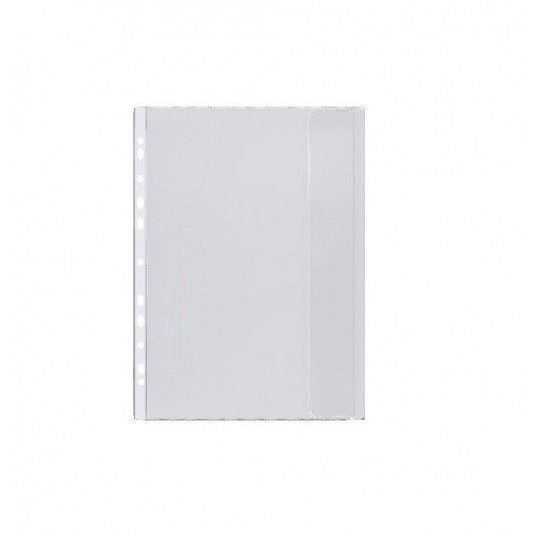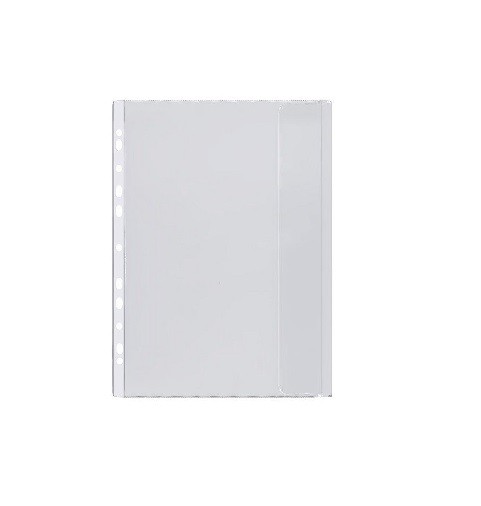 -folia miękka, mocna groszkowa PVC, -prawej strony posiada klapkę chroniącą dokumenty przed wypadaniem, -boczna perforacja umożliwiająca wpięcie do segregatora z dowolnym ringiem,