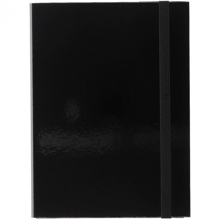 -wykonana z twardej tektury o grubości 2 mm -posiada czarną wyklejkę z wysokiej jakości surowca -pokryta folią polipropylenową -do formatu A4 -szerokość grzbietu do 50 mm -zamykana na gumkę -kolor czarny