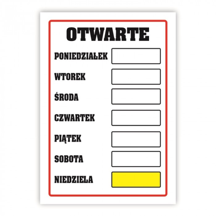 Tabliczka laminowana A4 otwarte wszytskie dni tyg