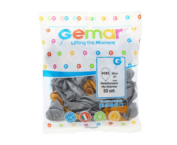 Balony metaliczne Gemar 26cm ZŁOTY & SREBRNY 50szt