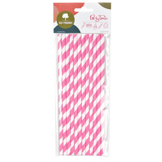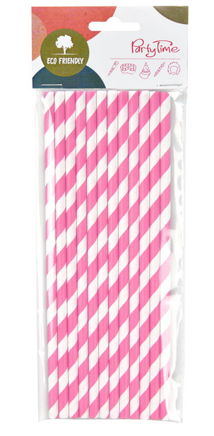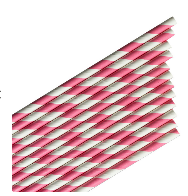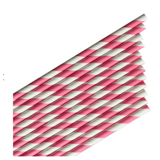 Słomka papierowa x200mm PASKI RÓŻOWE 12szt