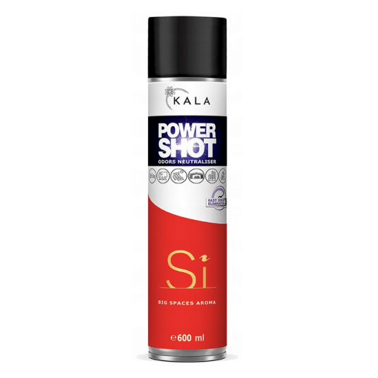 Neutralizator nieprzyjemnych zapachów, aromatyzer odświeżacz Kala POWER SHOT 600 ml to produkt z rewolucyjnym sposobem dozowania, dzięki któremu jedno naciśnięcie wentyla (ok. 1 sekunda) neutralizuje nieprzyjemne zapachy oraz aromatyzuje około 200 m3. W składzie POWER SHOT obecne są substancje czynne, dzięki którym nieprzyjemne zapachy są neutralizowane, a nie jak w przypadku większości odświeżaczy przykrywane. Wraz z neutralizacją nieprzyjemnych zapachów POWER SHOT zapewnia również aromatyzację przestrzeni jednym z dostępnych w gamie POWER SHOT zapachów.