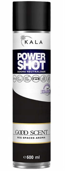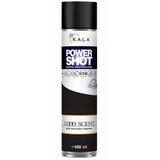 Kala POWER SHOT 600ml to neutralizator nieprzyjemnych zapachów, odświeżacz. Produkt z rewolucyjnym sposobem dozowania, dzięki któremu jedno naciśnięcie wentyla (ok 1 sekunda) neutralizuje nieprzyjemne zapachy oraz aromatyzuje około 200 m3. W składzie POWER SHOT obecne są substancje czynne, dzięki którym nieprzyjemne zapachy są neutralizowane a nie jak w przypadku większości odświeżaczy przykrywane. Wraz z neutralizacją nieprzyjemnych zapachów. Neutralizator nieprzyjemnych zapachów, odświeżacz Kala POWER SHOT zapach cashmere (600 ml) to prestiżowy zapach tajemniczości orientu, w którego składzie odnajdziemy orientalną wanilię a także nuty żywiczne, drzewne, ambrowe. Cashmere otuli Cię swym aromatem niczym delikatny szal.