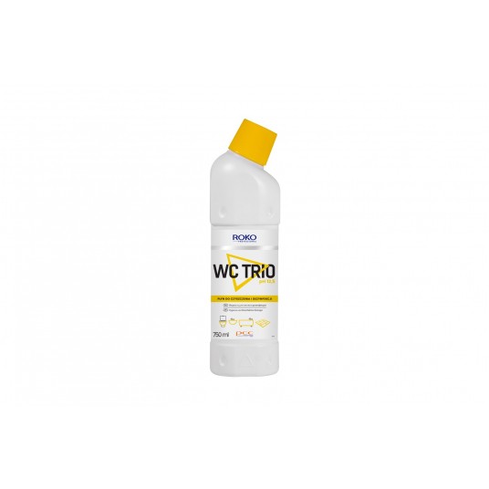 WC TRIO 1L , to skoncentrowany płyn do czyszczenia i dezynfekcji armatury sanitarnej, wanien, umywalek, płytek oraz fug. Doskonale zmywa i skutecznie dezynfekuje, bezwzględny wobec grzybów i bakterii. Idealny do wybielania. Gęsty koncentrat przywiera do powierzchni toalety, pozostawiając czystość na dłużej. Produkt profesjonalny, dopuszczony do użytku prywatnego. Nie używać do powierzchni drewnianych, metalowych (chromowanych itp.), emaliowanych, lakierowanych. Nie używać do jedwabiu, wełny, tkanin kolorowych, sztucznych i delikatnych. Zawsze stosować zalecenia producentów odzieży, materiałów, sprzętu. Nie wylewać na meble, dywany ponieważ mogą powstać uszkodzenia.