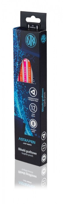 Ołówek grafitowy z gumką – trójkątny przekrój prawidłowo kształtujący układ dłoni i ułatwiający naukę pisania – lakierowana oprawa z czarnego drewna – twardość grafitu B