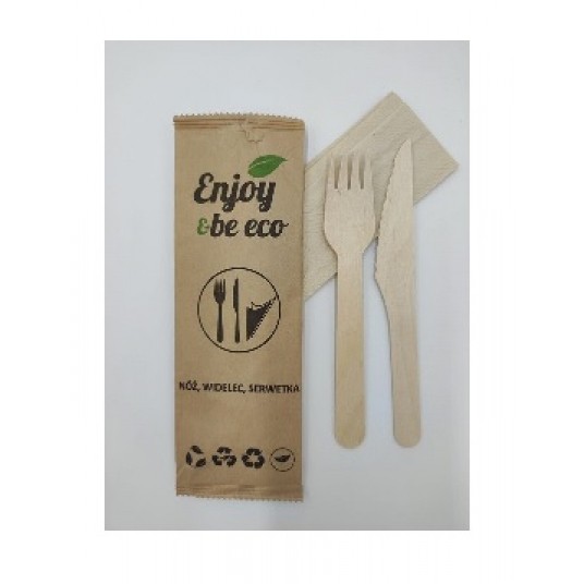 Enjoy&BeEco Sztućce higieniczne drewniane (nóż, widelec, serwetka)