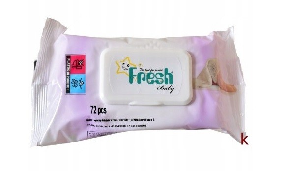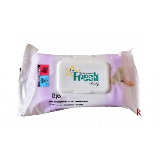 Chusteczki nawilżane Fresh Baby 72 szt. Zakres stosowania - od niemowląt do dorosłych wymiary chusteczki - 14 cm x 20 cm. Opakowanie zamykane na klips. Wykonane z delikatnego i miękkiego materiału, bardzo miły i subtelny zapach. PH 5.5, alkohol free, bez parabenów. Ważność produktu - 2 lata idealna wilgotność pojedynczej chusteczki.