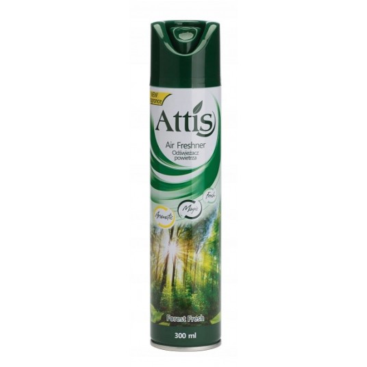 Odświeżacz powietrza Attis o delikatnym zapachu. Dzięki formule 3w1 odświeżacz neutralizuje wszelkie nieprzyjemne zapachy. Odświeżacz przeznaczony do wszystkich pomieszczeń od biur po piwnice i pokoje w Twoim domu.