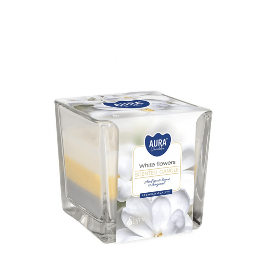 Świeca zapach szkło 3 kolory AURA Białe Kwiaty